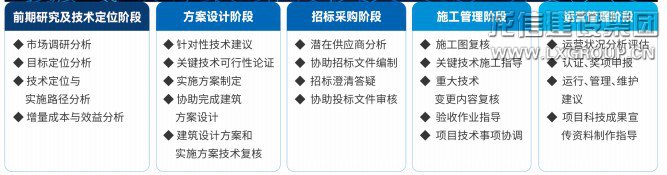 承接工程建設(shè)全過(guò)程技術(shù)服務(wù),包括智慧建筑、綠色建筑、健康建筑、超低能耗建筑、裝配式建筑等各類先進(jìn)建筑項(xiàng)目的策劃與全過(guò)程技術(shù)咨詢;根據(jù)實(shí)際工程需求,提供工程質(zhì)量智能檢測(cè)技術(shù)服務(wù)。