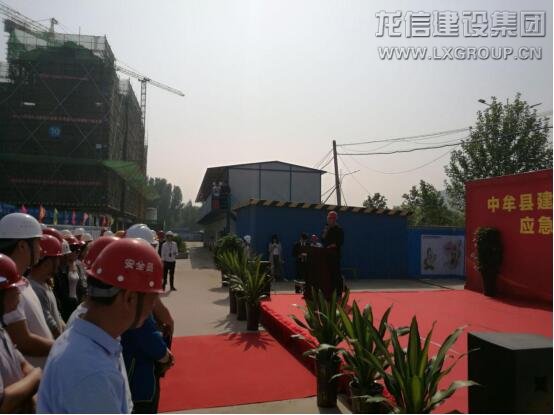 2018 年 4 月 27 日上午,中牟縣住建局在龍信集團(tuán)鄭州路勁九郡·天籟園項(xiàng)目組織開展“中牟縣建筑工地安全生產(chǎn)事故應(yīng)急救援與處置演練”現(xiàn)場觀摩活動(dòng)。參加本次演練的領(lǐng)導(dǎo)有:中牟城建局的張伍發(fā)局長、袁喜亮局長、郝曉剛站長、安監(jiān)局的王夢醒局長、姚美霞局長,路勁產(chǎn)業(yè)集團(tuán)總經(jīng)理宋國棟,龍信集團(tuán)十二分公司經(jīng)理郭東升,路勁九郡?天籟園項(xiàng)目執(zhí)行經(jīng)理沈忠衛(wèi),山東省建設(shè)監(jiān)理咨詢有限公司的領(lǐng)導(dǎo)及項(xiàng)目相關(guān)監(jiān)理人員。