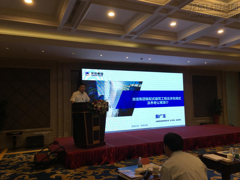 6月14日上午,會議由中國土木工程學會住宅工程指導工作委員會理事長張軍主持。郭允沖部長致辭并分析了國內外裝配式建筑的現狀和未來發(fā)展方向。王華理事長對裝配式建筑的發(fā)展歷程和技術體系做了深入分析。龍信集團總工程師殷廣玉作了題為“龍信集團裝配式建筑與養(yǎng)老住宅介紹”的匯報,詳細介紹了龍信產業(yè)化發(fā)展歷程和技術優(yōu)勢,并就南通人才公寓項目和海門樂頤薈老年公寓項目為實例講述了龍信集團裝配式剪力墻及框架結構設計、施工的先進性并介紹了龍信老年公寓讓老者“養(yǎng)、尊、處、優(yōu)”的社區(qū)養(yǎng)老運營模式。